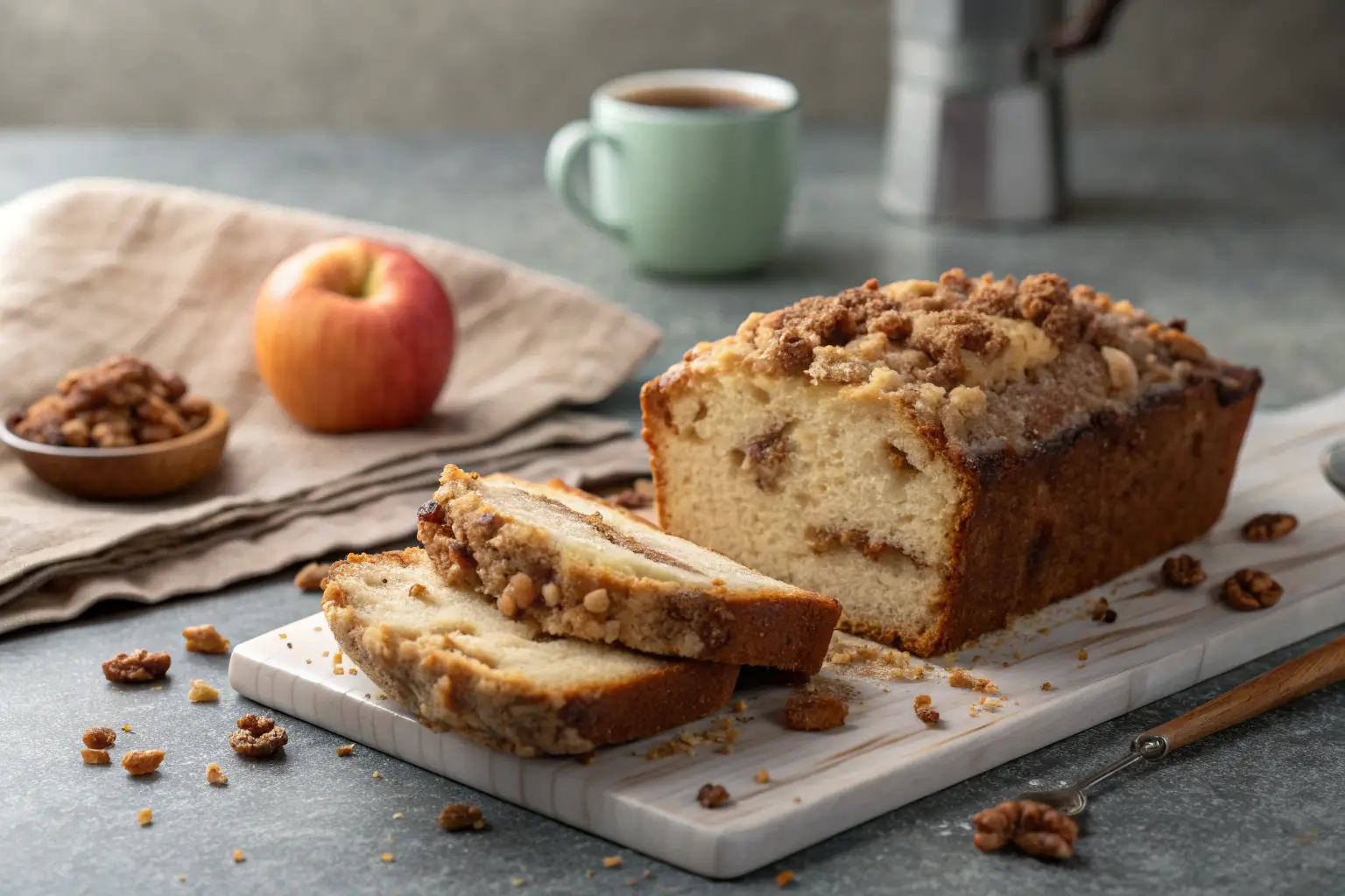 Cozy Amish apple fritter bread with maple crumble topping, sliced and ready to serve