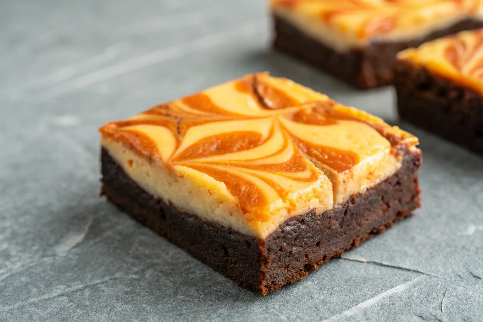 - In another bowl, beat the softened cream cheese with powdered sugar and orange food coloring until smooth. This will create a vibrant, spooky swirl for your brownies.