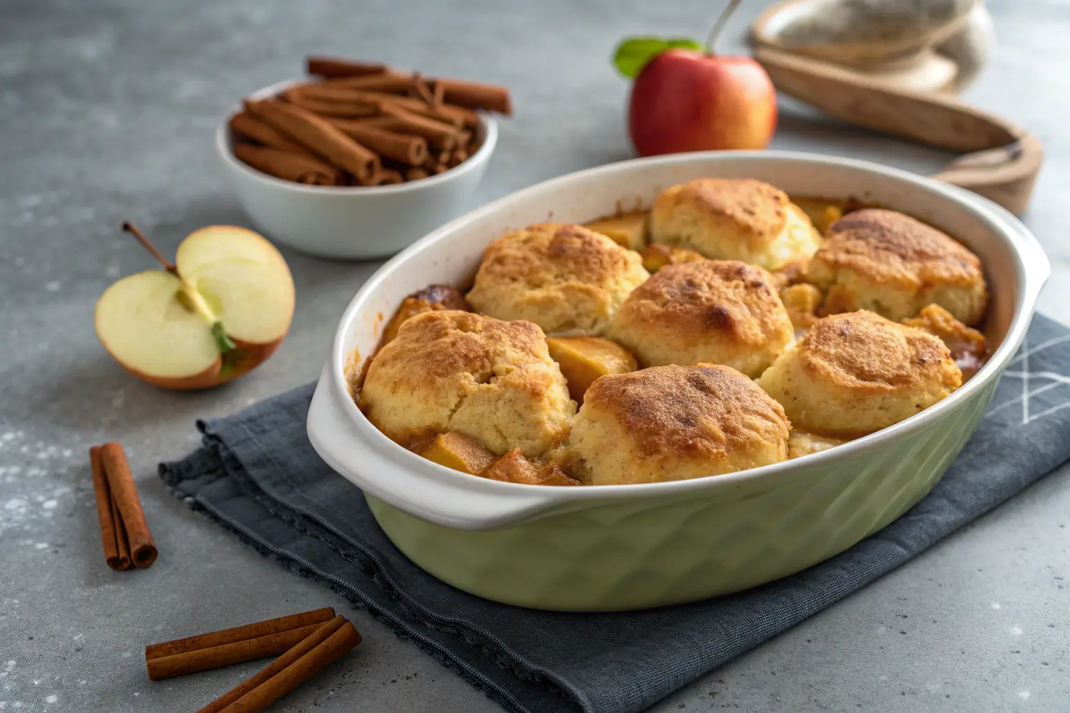 - Bake for 30 minutes or until the biscuits are golden and the apples are bubbly.