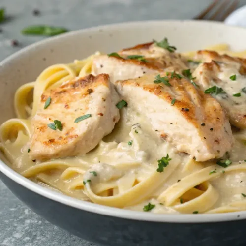 This dish is pure comfort food, bringing together tender chicken, creamy sauce, and pasta in one delicious bowl. Itโs like a warm hug after a long day.