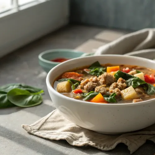 A hearty and healthy soup made with lean ground turkey and a variety of vegetables. Perfect for a comforting meal, easily customizable with your favorite veggies, and suitable for meal prep and leftovers.