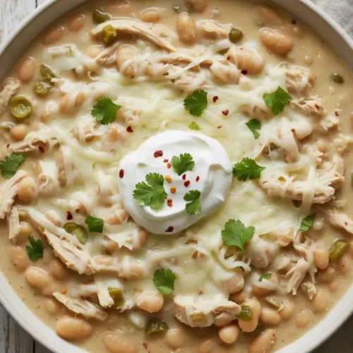 Homemade White Chicken Chili is more than just a meal; it’s a hug in a bowl. The creamy texture and zesty flavors wrap around you like a warm blanket on a cold night. Itโ€™s a dish that brings family together, sparking laughter and stories around the dinner table. Each spoonful reminds us of cozy nights spent together, sharing not just food but love and warmth.