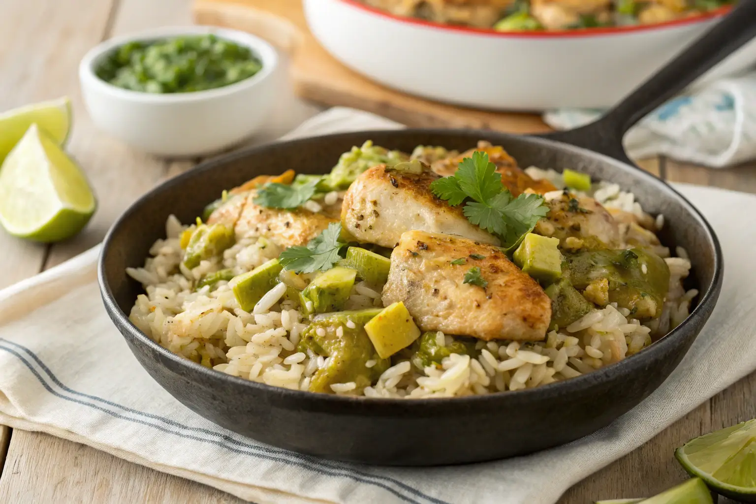 Salsa Verde Chicken and Rice Skillet Dinner